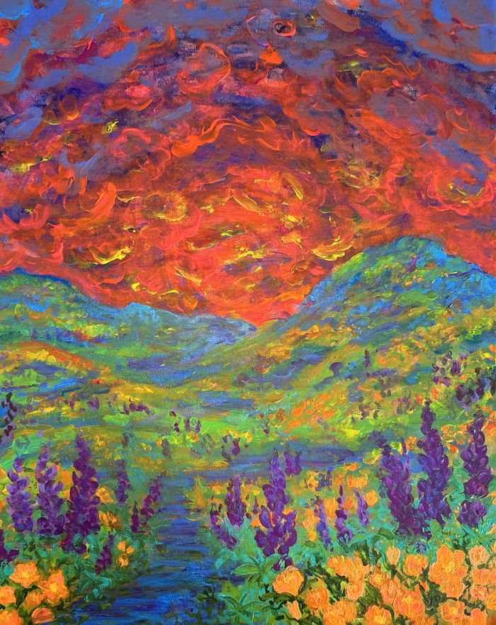 I used loose brushstrokes to create abstracted colors that emphasizes the subject matter while applying layers to work toward as I continue to apply paint to achieve the desired outcome with the acrylic on canvas.